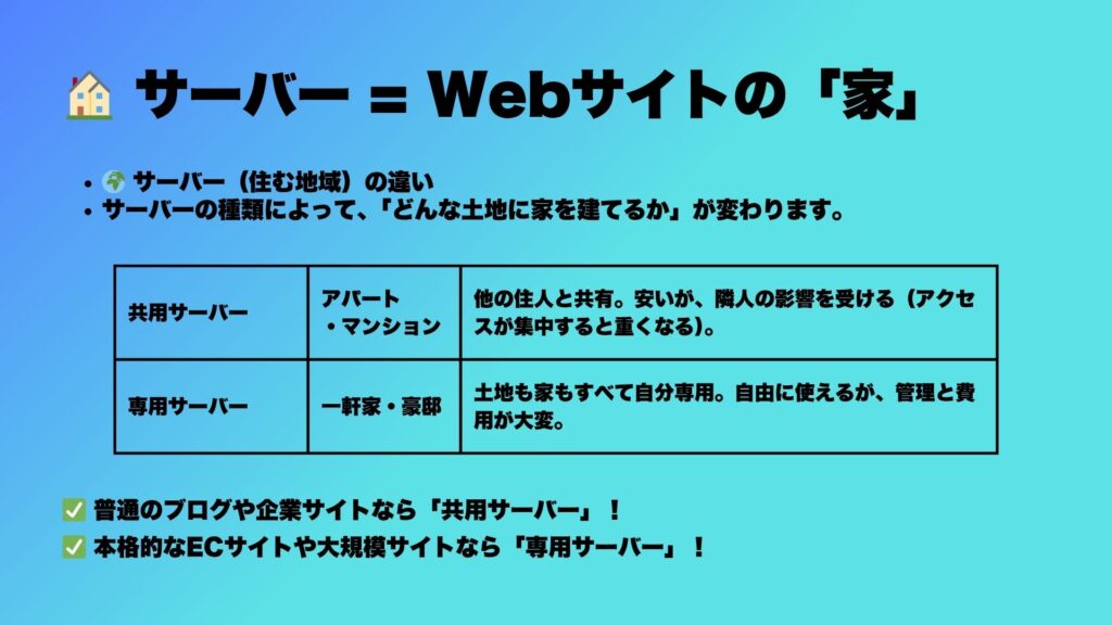 サーバー:家を建てるための「土地」